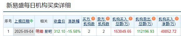 中国经济网络北京,9月4日新闻Xinyisheng(300502)今天关闭312.10 Yuanes,15.58%。根据龙和老虎列表的数据,在Xinyisheng数量最多的五个主要数据中,有两个机构的专用席位。在最大的Xinyisheng的前五五个,在前五个机构中有两个机构专用席位,是最大的Xinyisheng。根据统计数据,今天安装座椅购买的Xinyisheng的净价值为4.4527亿元。